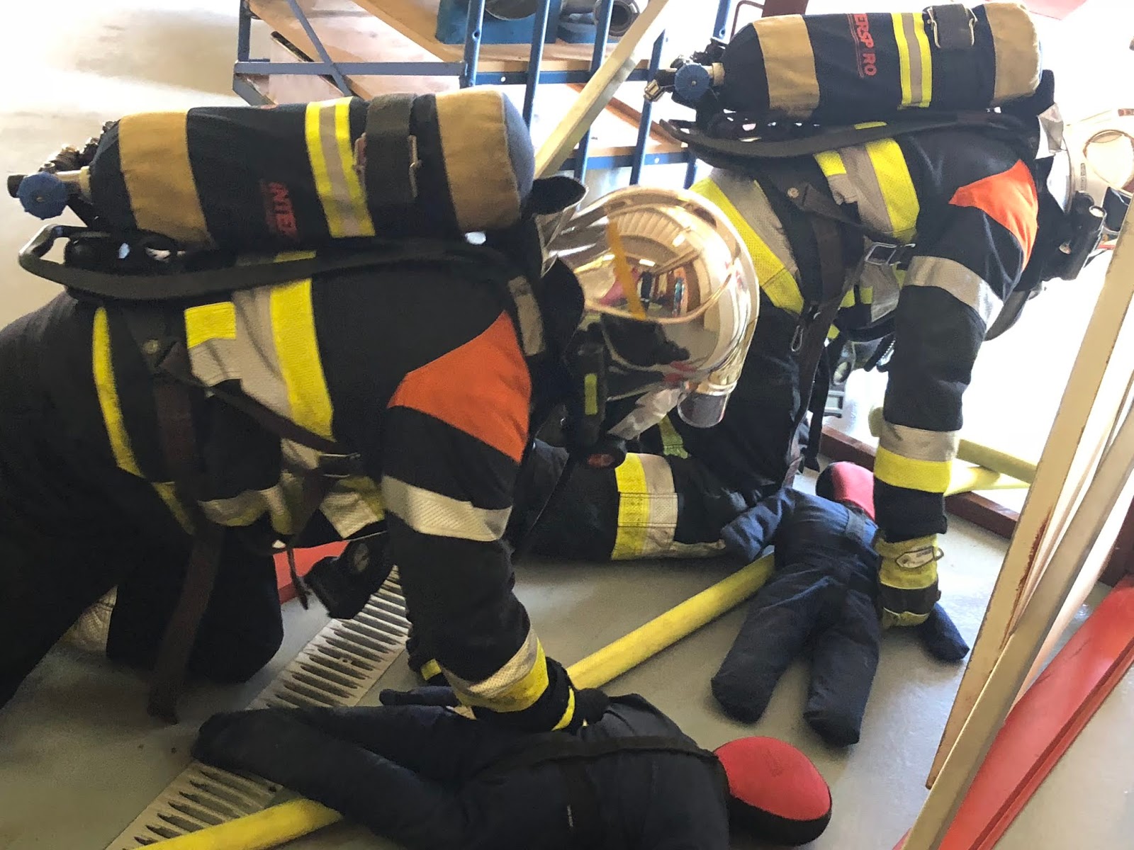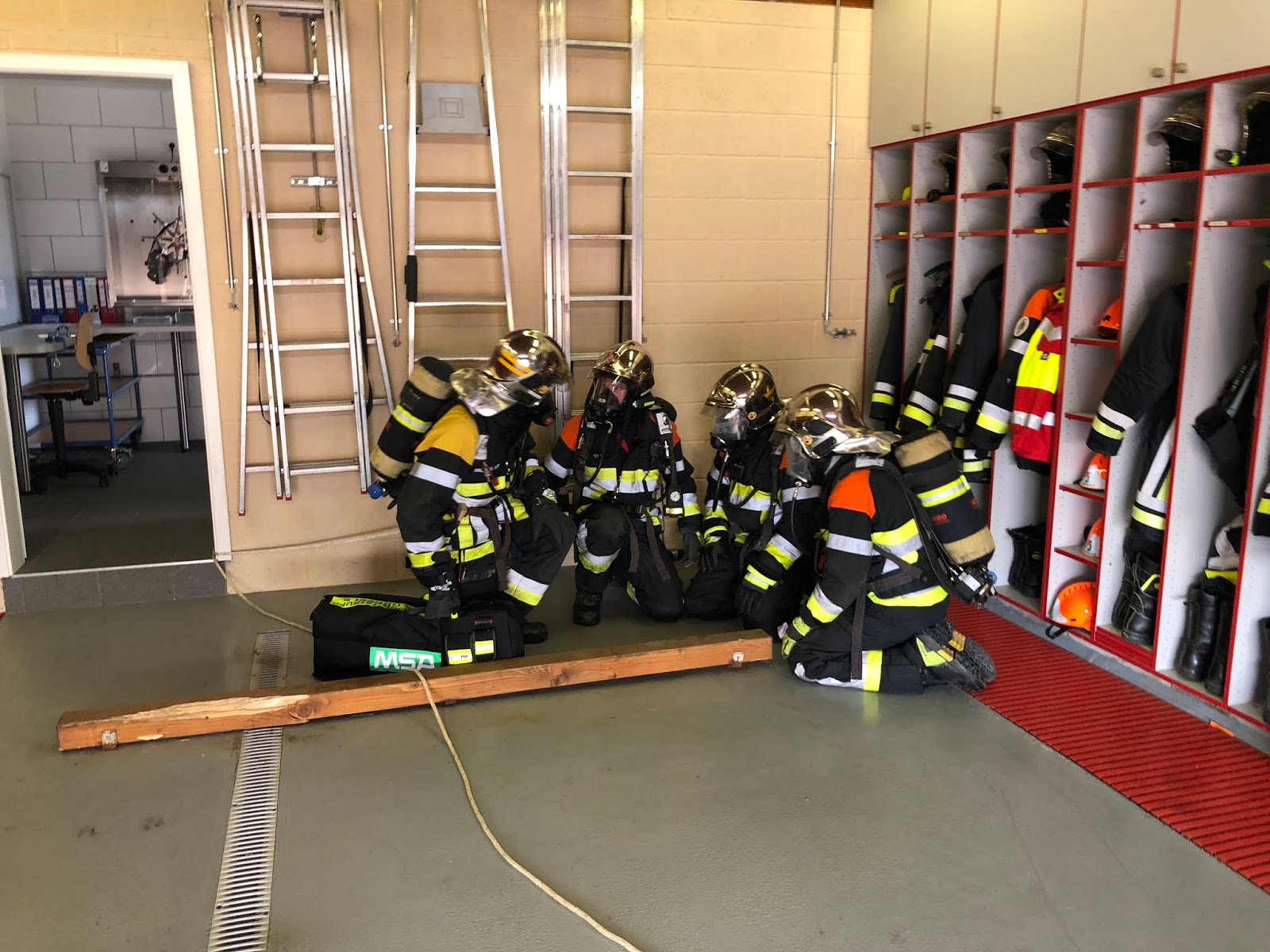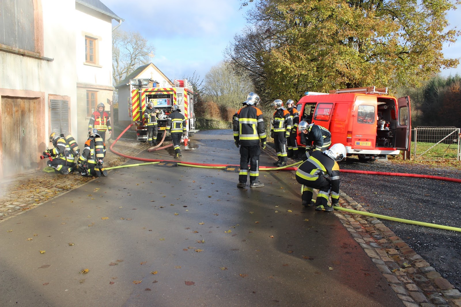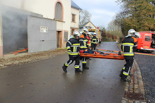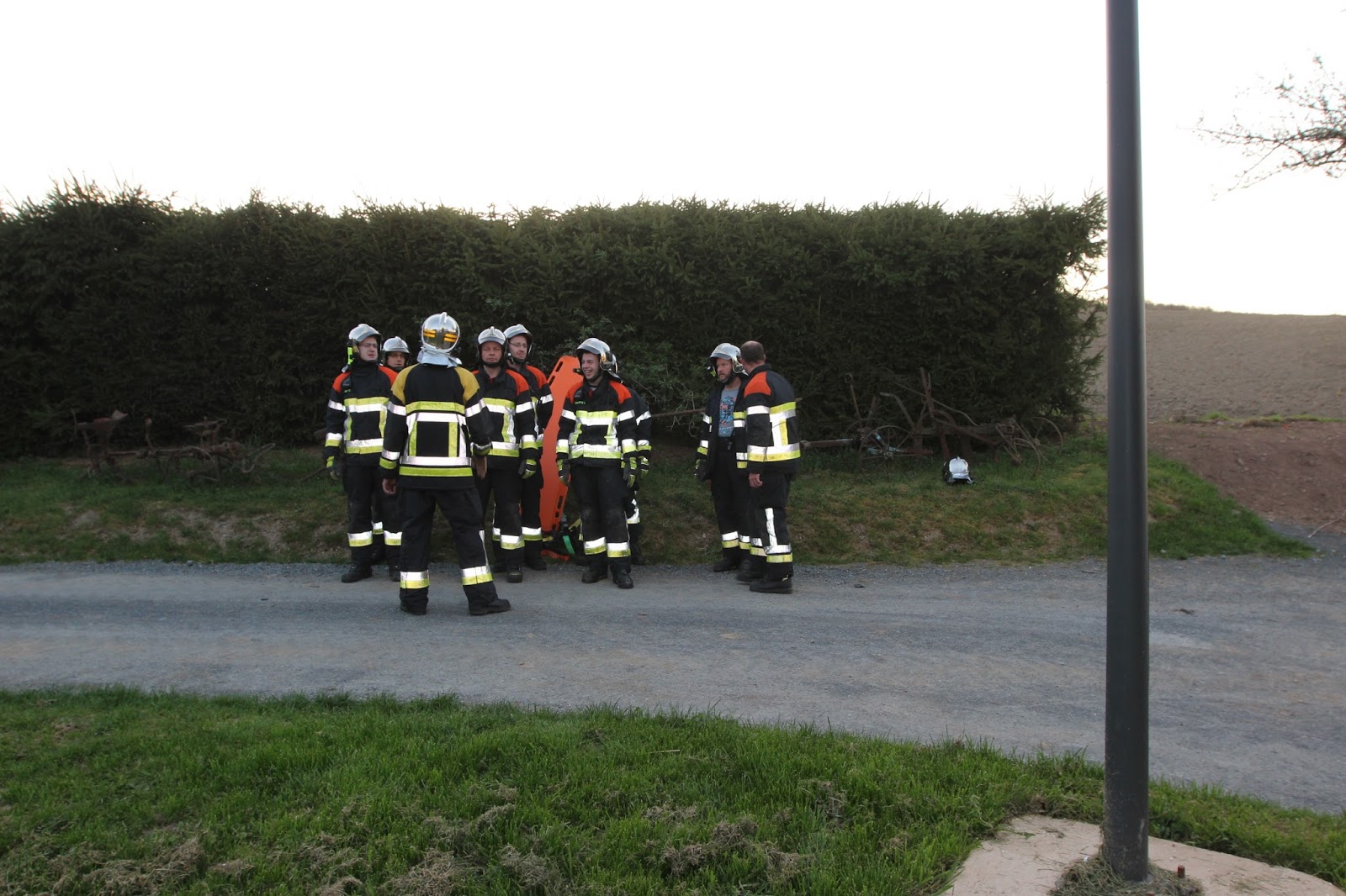 (Der Übungsleiter entschied aufgrund der hohen Umgebungstemperaturen auf eine komplett angelegte persönliche Schutzausrüstung zu verzichten - soweit der Eingenschutz nicht beeinträchtigt wird)